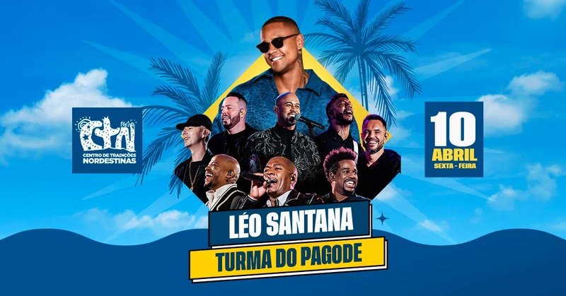 O swing baiano e o pagode paulistano se encontram no Centro de Tradições Nordestinas (CTN) para uma grande festa. O cantor Léo Santana e o grupo Turma do Pagode realizam shows no dia 10 de abril no tradicional espaço de eventos da zona norte de São Paulo, a partir das 20h e com ingressos disponíveis na Ticket360. Conhecido como o “GG”, Léo Santana é um dos cantores de maior sucesso do pagode baiano. Dono de hits como “Zona de Perigo”, “Contatinho”, “Santinha” e “Posturado e Calmo”, Léo promete um show cheio de energia e grandes momentos para o público.
