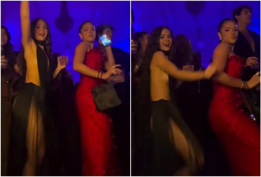 Durante o evento, a performance das artistas ao som de “JETSKI” foi um dos destaques. Ambas demonstraram conhecer a coreografia da música de cor, executando os passos com entusiasmo. Contudo, um detalhe chamou a atenção: as atrizes tiveram o cuidado de realizar os movimentos com cautela, pois estavam com copos de bebidas nas mãos, evitando qualquer incidente. Para a ocasião, Mel Maia escolheu um elegante vestido preto com franjas e aberturas laterais, enquanto Maisa optou por um brilhoso e sofisticado vestido vermelho.