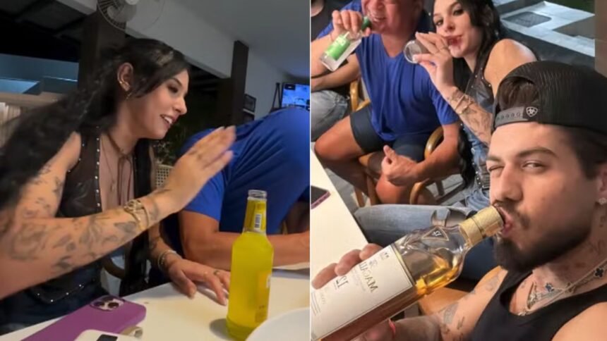 Ana Castela, de 21 anos, aproveitou uma madrugada animada ao lado de Zé Felipe, de 27 anos, e Leonardo, de 62 anos. O encontro em família, marcado por bebidas e muita descontração, foi exibido em vídeos publicados por Zé, que atualmente tem sido apontado como possível par romântico da cantora sertaneja.