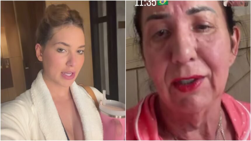 A ex de Zé Felipe revelou que a mãe havia sido maquiada pela neta. Ainda vestindo pijama, a avó surgiu com um batom escuro escolhido por Maria Flor, detalhe que chamou a atenção. Ao notar o visual inusitado de Margareth, Virginia reagiu de forma imediata à cena.